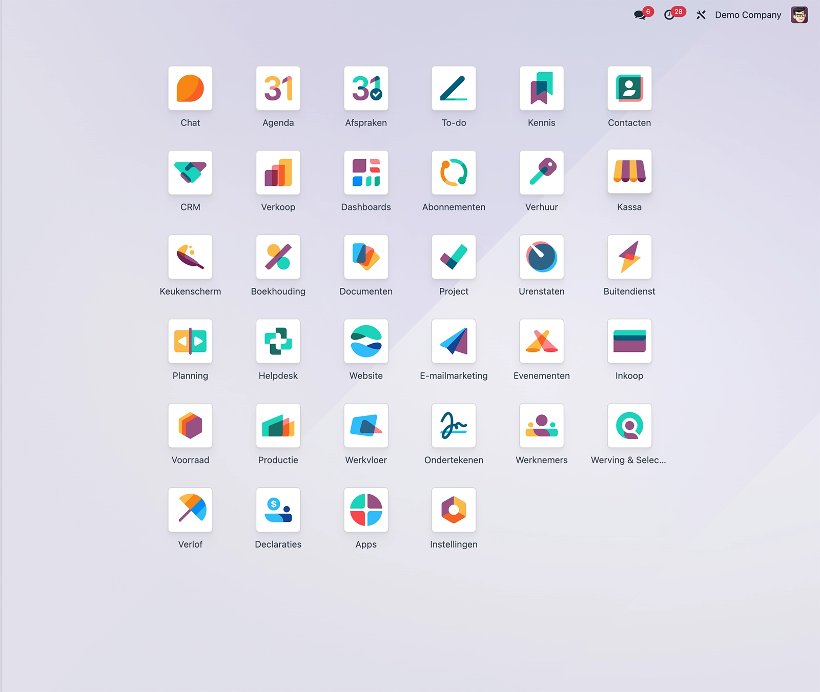 Odoo heeft een moderne en snelle gebruiksinterface ontworpen voor bedrijven anno nu. Volledig web gebaseerd en te gebruiken op je laptop, tablet of smartphone. Alle Apps in Odoo zijn aan elkaar gekoppeld. Zo navigeer je eenvoudig vanaf de klantkaart naar de gerelateerd verkooporders, inkooporders of facturen. Odoo biedt je de hulpmiddelen om je bedrijf efficiënt te runnen. Zo kun je gebruik maken van AI functies zoals slimme herkenning van je facturen, maar ook van de Whatsapp integratie of de mogelijkheid om digitaal te ondertekenen.